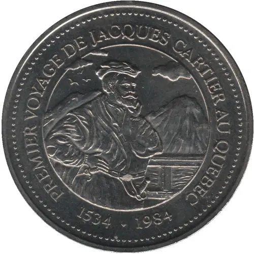 | Obverse lettering | PREMIER VOYAGE DE JACQUES CARTIER AU QUÉBEC 1534 ♦ 1984 |