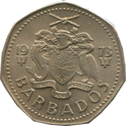 Historical Context: This 1 Dollar large type coin, issued by Barbados between 1973 and 1986, represents a crucial period in the island nation's post-independence history. Having achieved full independence from the United Kingdom in 1966, Barbados, under the reign of Queen Elizabeth II as its Head of State, embarked on a path of self-determination and the establishment of distinct national symbols. The issuance of its own coinage, while still part of the broader Eastern Caribbean Currency Authority (and later the Eastern Caribbean Central Bank from 1983), underscored its sovereignty and economic identity within the Commonwealth realm. This era was characterized by nation-building and the consolidation of Barbadian cultural and economic distinctiveness.