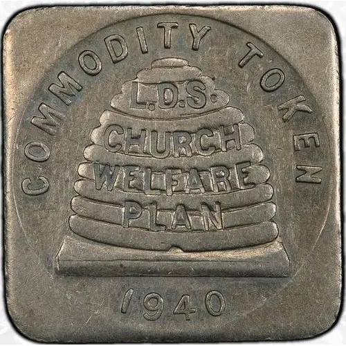 | Chữ khắc mặt trước | COMMODITY TOKEN L.D.S. CHURCH WELFARE PLAN 1940 |