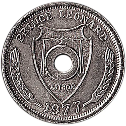 Artistry: The artistic execution of this coin, typical for micronational issues, likely involved uncredited designers. The stylistic approach leans towards traditional numismatic portraiture and heraldry on the obverse, featuring Prince Leonard I. The reverse design undoubtedly depicts motifs related to Queen Elizabeth II's Silver Jubilee, possibly incorporating royal cyphers, crowns, or symbolic representations of her 25-year reign. The design prioritizes clear communication of its commemorative purpose, reflecting a conventional, legible aesthetic rather than avant-garde artistic innovation, ensuring immediate recognition of its theme.