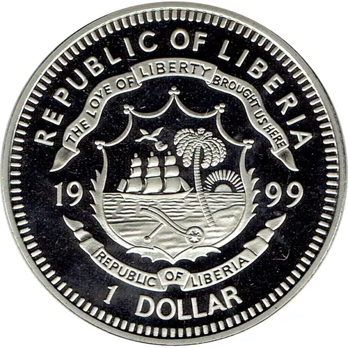 | Obverse lettering | REPUBLIC OF LIBERIA THE LOVE O LIBERTY BROUGHT US HERE 1999 REPUBLIC OF LIBERIA 1 DOLLAR |