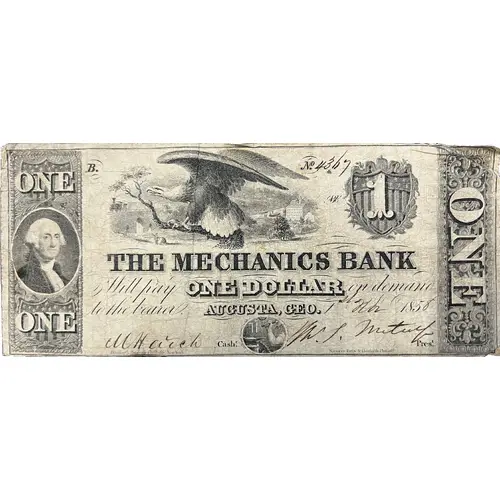 | Obverse lettering | ONE The MECHANICS BANK Will pay ONE DOLLAR on demand to the bearer. Augusta , GEO. _____ 18__ |