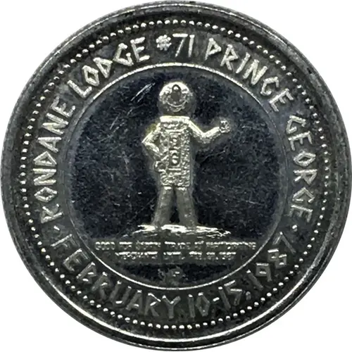 | Obverse lettering | RONDANE LODGE #71 PRINCE GEORGE GOOD FOR $1.00 IN TRADE AT PARTICIPATING MERCHANTS UNTIL FEB. 28, 1987 LT FEBRUARY 10-15, 1987 |