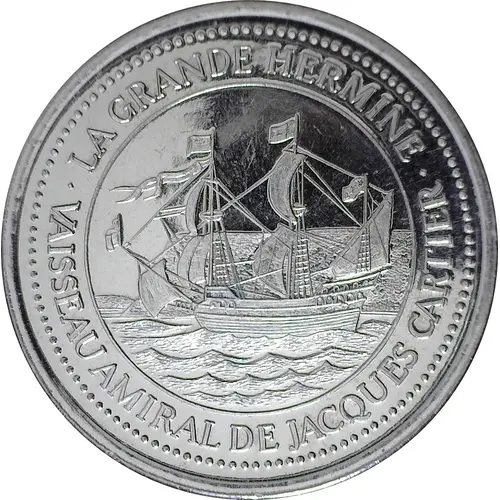 | Obverse lettering | LA GRANDE HERMINE VAISSEAU AMIRAL DE JACQUES CARTIER |