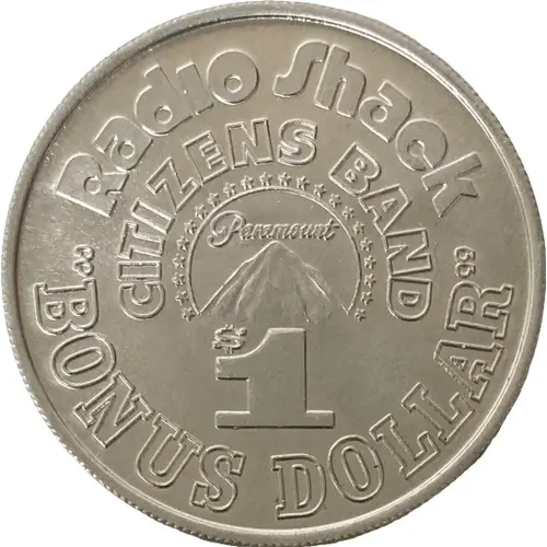 | Obverse lettering | Radio Shack CITIZENS BAND Paramount $1 “BONUS DOLLAR” |