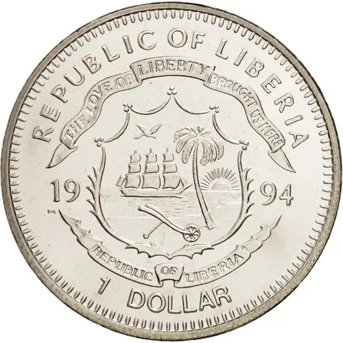 | Obverse lettering | REPUBLIC OF LIBERIA THE LOVE OF LIBERTY BROUGHT US HERE 1994 REPUBLIC OF LIBERIA 1 DOLLAR |