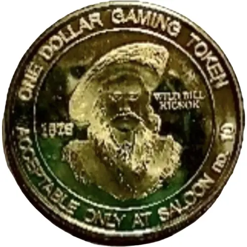 | Obverse lettering | ONE DOLLAR GAMING TOKEN FOR USE BY PLAYER ONLY Saloon no. 10 1876 WILD BILL HICKOK ACCEPTABLE ONLY AT SALLON NO. 10 |