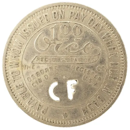 PAYABLE TO WHOM ISSUED ON PAY DAY WHEN DUE IN CASH THE OSBORNE REGISTER CO CIN. O. U.S.A. |