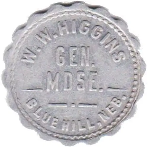 | 正面铭文 | W.W. HIGGINS GEN. MDSE. BLUE HILL, NEB. |