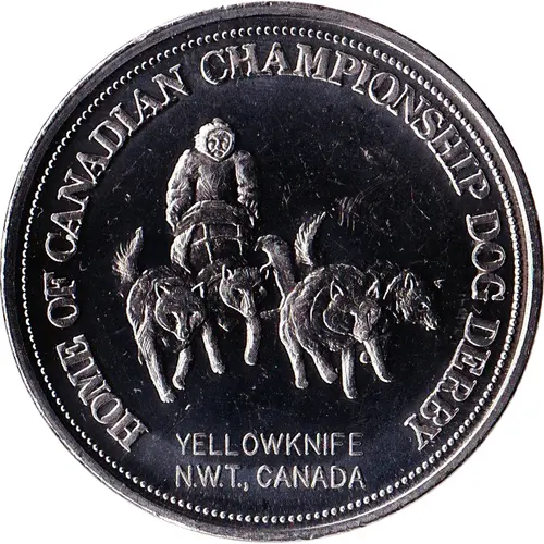 | Obverse lettering | HOME OF CANADIAN CHAMPIONSHIP DOG DERBY YELLOWKNIFE N.W.T., CANADA |