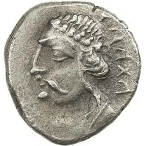 | Reverse description | Archer standing while holding bow to the right, all surrounded by distorted Greek legend. |
