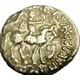 | 正面描述 | King mounted on horse right, holding whip, Kharoshthi letter bu at right, Greek legend around |