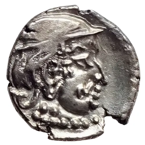 | Reverse description | Chaitya (3-arched hill), river below, crescent moon and sun above, Brahmi legend around |