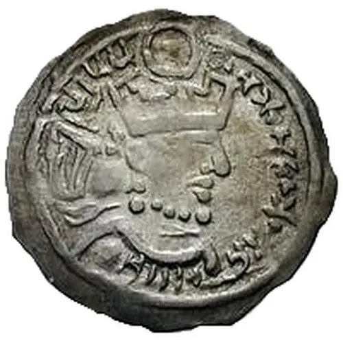 | Descripción del anverso | Bust facing right with circled dot above, all with Pehlevi legend behind and Sogdian legend in front. |