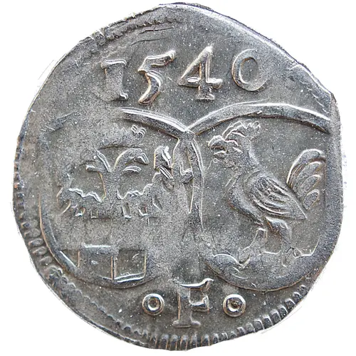 | Obverse description | Year above two emblems (Burggrafschaft Nürnberg left, Henneberg-hen right). |
