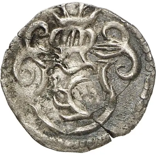 | Obverse description | Shield of stag horn arms, ornate helmet above. |