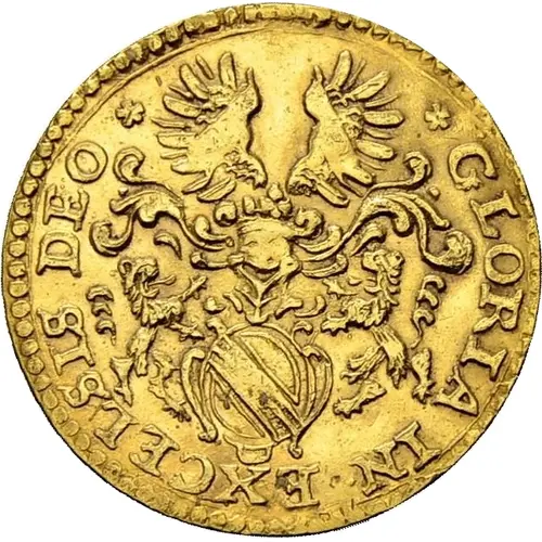 توضیحات روی سکه Helmeted city arms with small lion supporters.