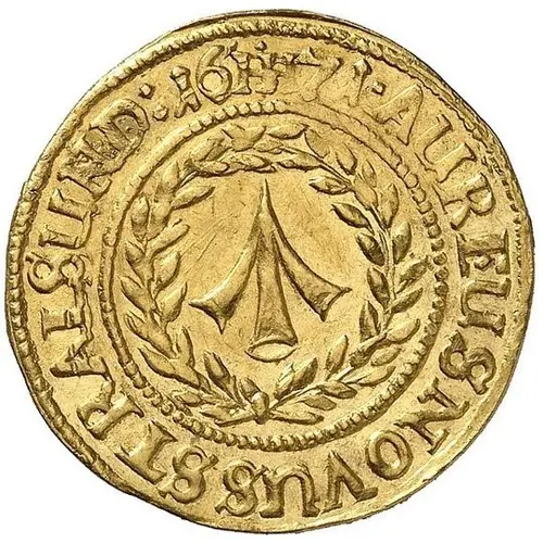 | Obverse lettering | AUREUS NOVUS STRALSUND 1671 HIH |