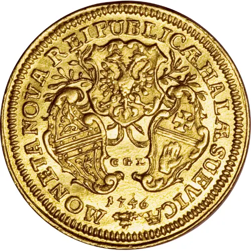 | Leyenda del anverso | MONETA NOVA REIPUBLICÆ HALÆ SUEVICÆ CGL 1746 |