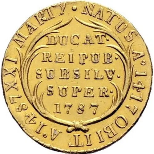 | Obverse lettering | · NATUS A 1417 OBIIT A 1487XXI MARTY DUCAT· REIPUB· SUBSILV· SUPER· 1787 |