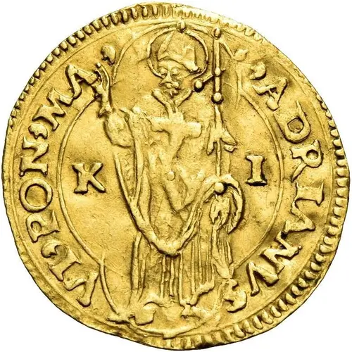 ADRIANVS VI٠PON٠MA٠ K I (Translation: Adrian 6th Supreme Pontiff) |