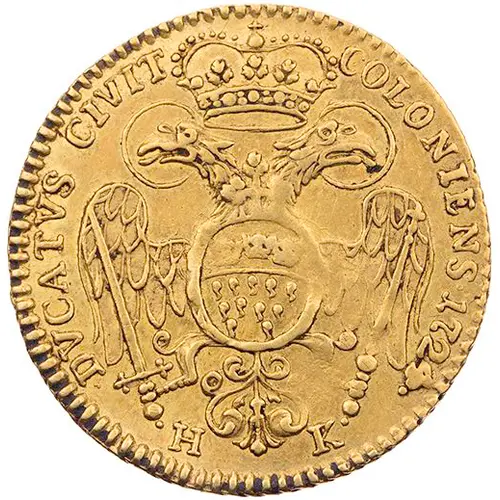 | Obverse description | Crowned nimbated double-headed eagle with imperial orb on the chest, the coat of arms on the underside, below signature H - K (Heinrich Koppers). |