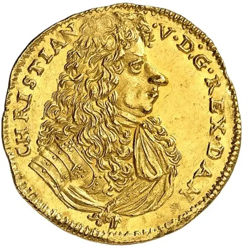 | توضیحات روی سکه | Armored bust of King Christian V with long hair facing right. King wears a scarf and a band with the pendant of the Order of the Elephant |