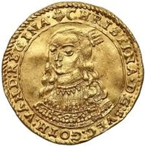 CHRISTINA · D : G : SVEC : GOTH : VAND : REGINA · (Translation: Gothorum Vandalorumque Christina Dei Gratia Sveciae Christina, with God`s grace, Queen of Sweden, the Goths, and the Wends) |
