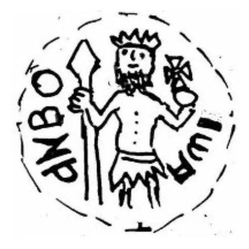 | Beschrijving voorzijde | Dan standing facing, holding spear and globus cruciger. |