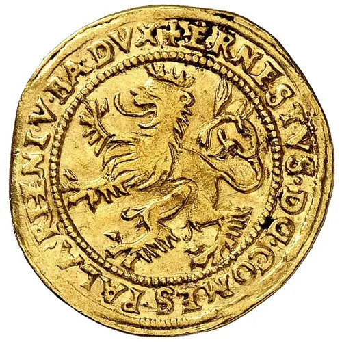 | Obverse description | Bohemian lion left in circle, titles of Ernst. |