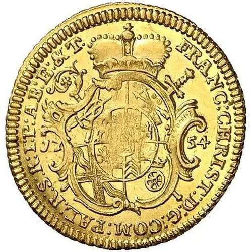 | توضیحات روی سکه | Crowned arms in cartouche, crossed sword and crozier behind dividing date below |