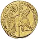 | Obverse description | St. Mark standing right, holding book of Gospels and presenting banner to Doge kneeling left. |