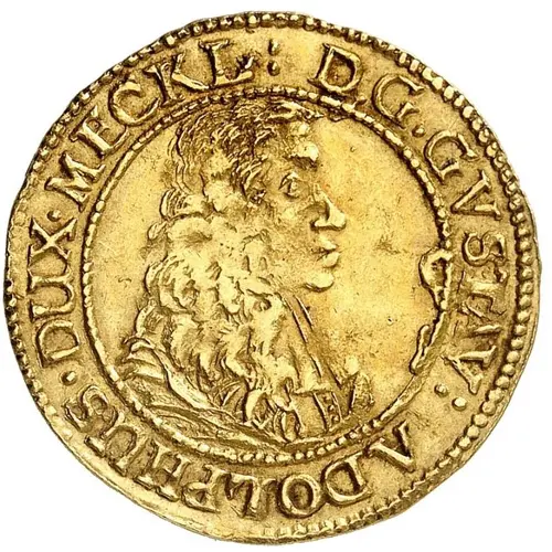 Legenda awersu D G GVSTAV ADOLPHUS DUX MECKL