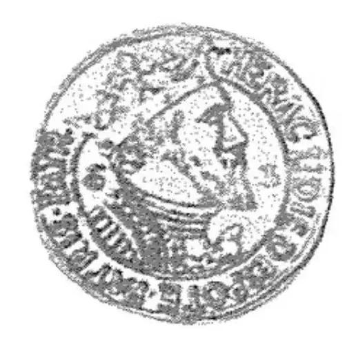 | 裏面の説明 | Split in four shield: I tower; II tree with a snake around it; III lion walking to the right; IV fish with a ring in its mouth. In the middle, a small shield with the auroch`s head held by the feet of an eagle with two heads and a crown on top. |