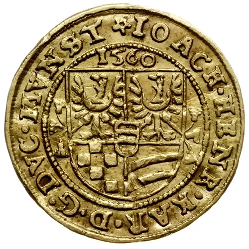 Historical Context: This 1 Ducat coin was issued by the Duchy of Münsterberg-Oels, a significant Silesian principality within the Bohemian Crown lands, then under Habsburg suzerainty. The coin commemorates the joint rule of three brothers from the House of Podiebrad: Joachim, Henry III, and Charles II. Their tenure (1553-1562) occurred during a transformative period in Central Europe, marked by the ongoing impact of the Reformation and shifting political alliances. This coinage served not only as a medium of exchange but also as a powerful declaration of their dynastic authority and sovereignty amidst a complex geopolitical landscape.