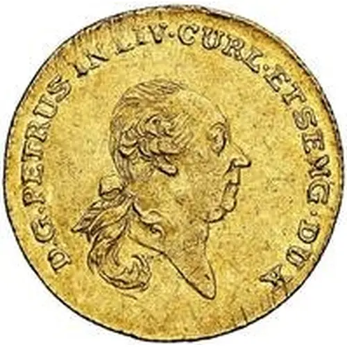 | Reverslegende | MON · AUREA · DUC · CURL · AD · LEGEM · IMP · 1780 (Translation: Gold coin of the Duchy of Courland, by the law of the Empire) |