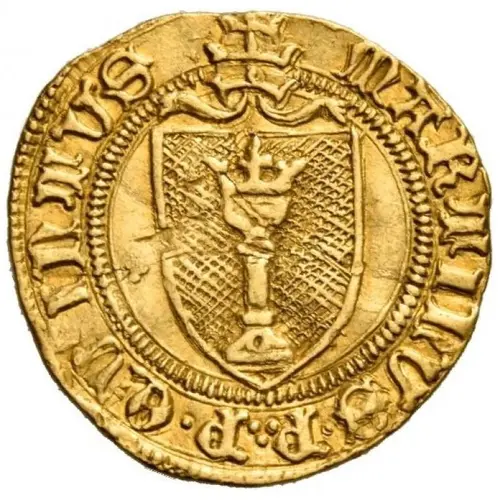 | Reverse description | Full-length standing Saint Peter, nimbate, holding keys in right hand, capped arms of Carillo to right. |