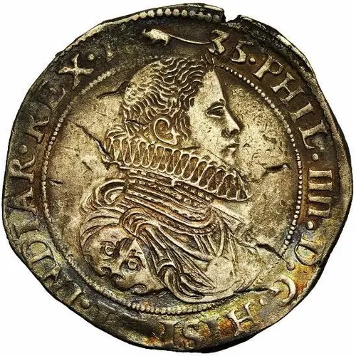 Obverse description Bust of Philip IV right in ruffled collar; mint mark divides date in top legend.
