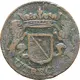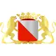 | Opis awersu | Crowned arms with horizontal stripes supported by lions |