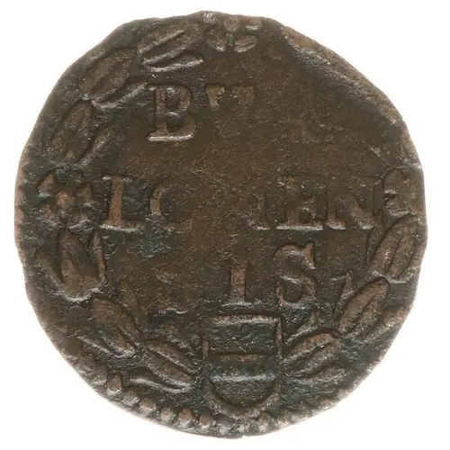 | Obverse description | Inscription in three lines within tulip wreath divided at bottom by small shield of Bouillon. |