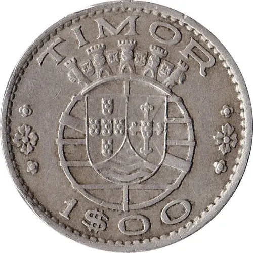 | Obverse description | Emblem of Portuguese Timor surrounded by legend and decoration |