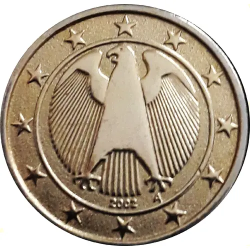 | Obverse description | Visual of the 1€ Germany coin: The stylized federal eagle, traditional symbol of German sovereignty. In a circle on the ring, the twelve stars of the Union. |