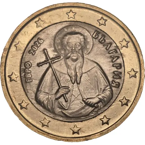 | 表面の説明 | Features Saint Ivan of Rila (Saint Ivan Rilski), Bulgaria’s patron saint, in a finely detailed, icon-style half-length portrait. He is depicted blessing with his right hand while holding a Gospel book in his left. Includes „БЪЛГАРИЯ“, the year 2026, and twelve EU stars around the rim, combining spiritual symbolism with national identity. |