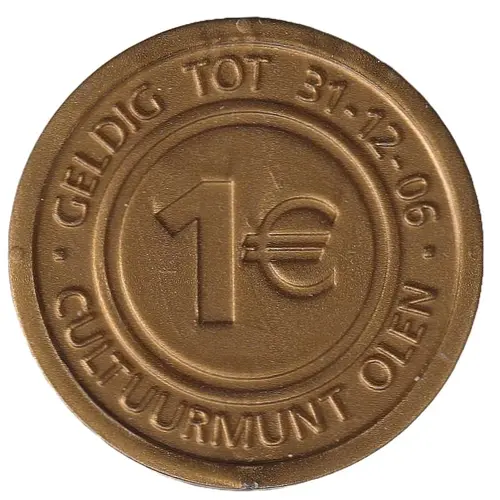 | Obverse lettering | GELDIG TOT 31 - 12 - 06 1 € CULTUURMUNT OLEN |