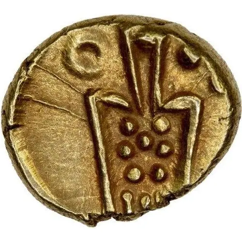 | Obverse description | Kali with the Tanjore rosette on the breast, annulet upper left, 2 dots upper right |