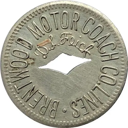 | Obverse lettering | • BRENTWOOD MOTOR COACH CO. LINES D.L. Feick |