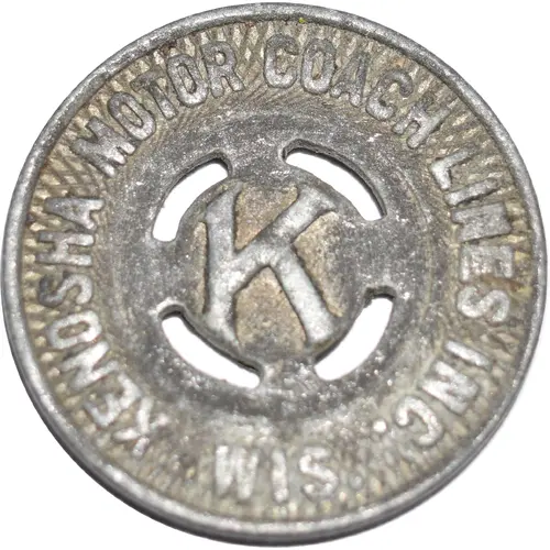| Obverse description | Kenosha motor coach lines inc WIS. Letter K surrounded by 4 slots. |