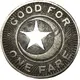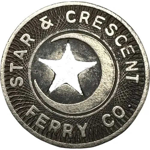 Legend follows the perimeter in a spiral cut field. Inner circle ends the spiral cut field at 14mm. Company logo with raise moon and cutout star in center. |