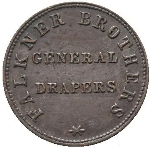 | Obverse lettering | FALKNER BROTHERS GENERAL DRAPERS |