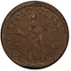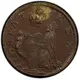 | Obverse description | Crowned robed figure of King David playing Harp, crown above with a drop of brass on to it (of dropped on the photographed example) |